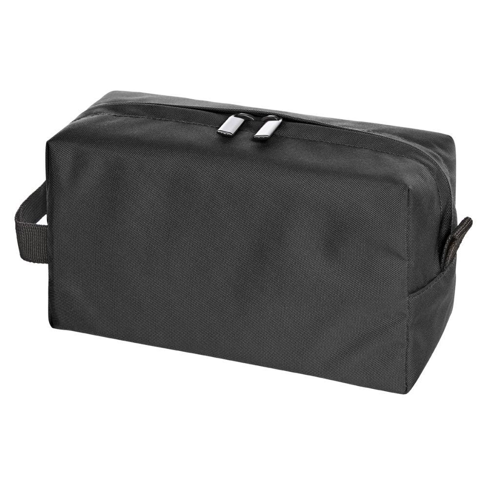 praktische rechteckige Reißverschlusstasche für viele Einsatzbereiche; RPET-Obermaterial; großes 2-Wege-Reißverschluss Hauptfach; Netzfach innen; seitliche Grifflaschen zum leichten Öffnen; Handgriff