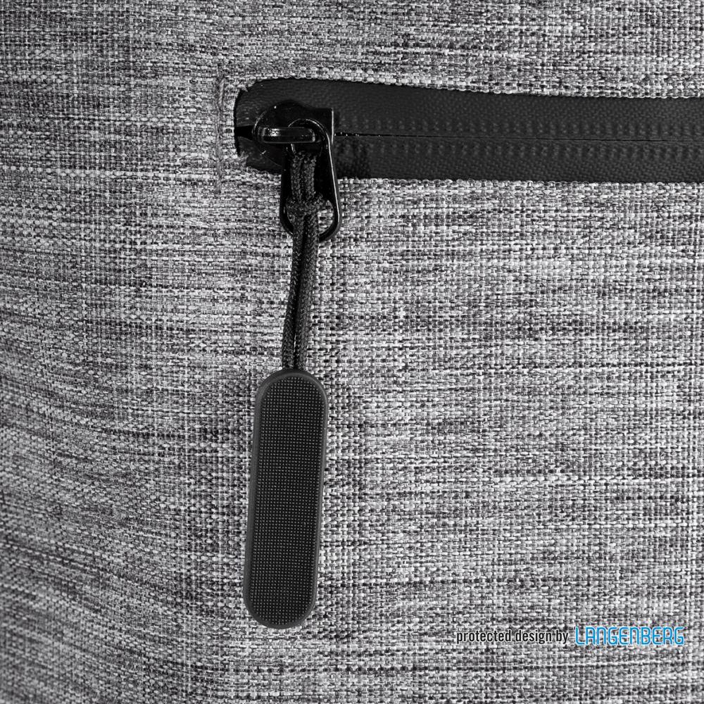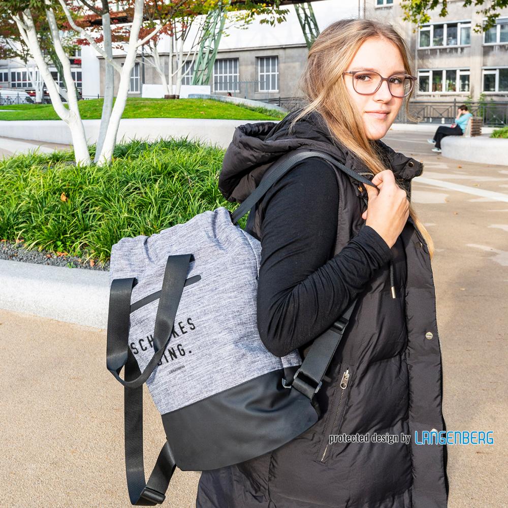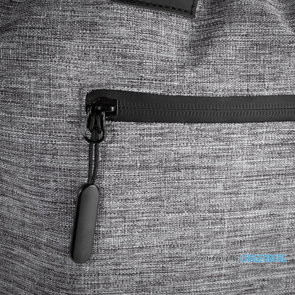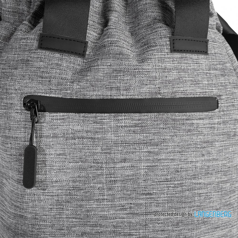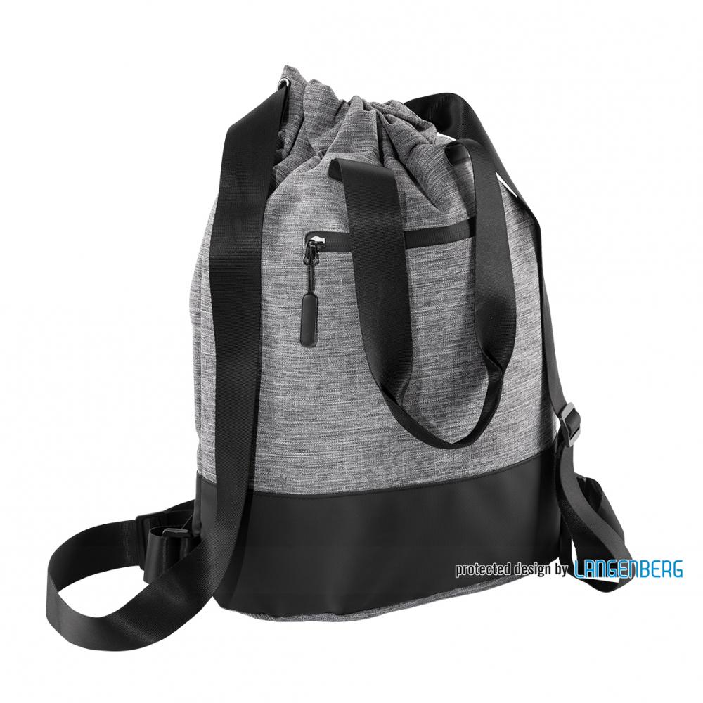 Hauptfach mit Kordelverschluss, Reißverschlussvortasche, Reißverschlussinnentasche, innenliegende Flaschenhalterung, verstellbare Gurte als Rucksack tragbar, lange Tragegriffe, Volumen ca. 26l