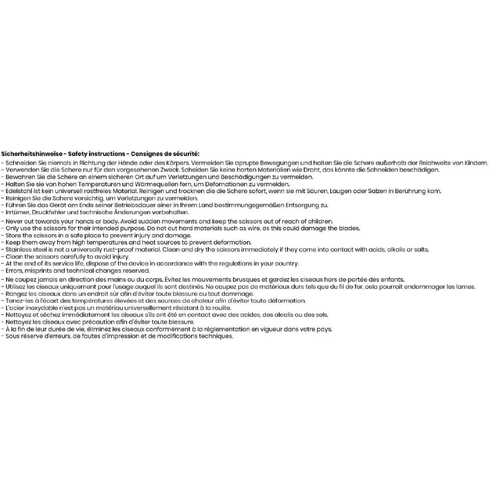 Schneidet, knackt, öffnet, schuppt und vieles mehr. - Universalschere aus brüniertem SK5- Stahl, - Härtegrad ca.60-65 Rockwell. - Maße (BxHxT): 231 x 91 x 15 mm, - Klingenlänge 92 mm. - Gewicht: 209 g. - - Werbeanbringung: - Auf der Schneide, 35 x 5 mm (L2); - - Dieses Produkt unterstützt aktiv den Ausgleich der - entstehenden CO2-Emissionen durch zertifizierte - Klimaschutzprojekte.