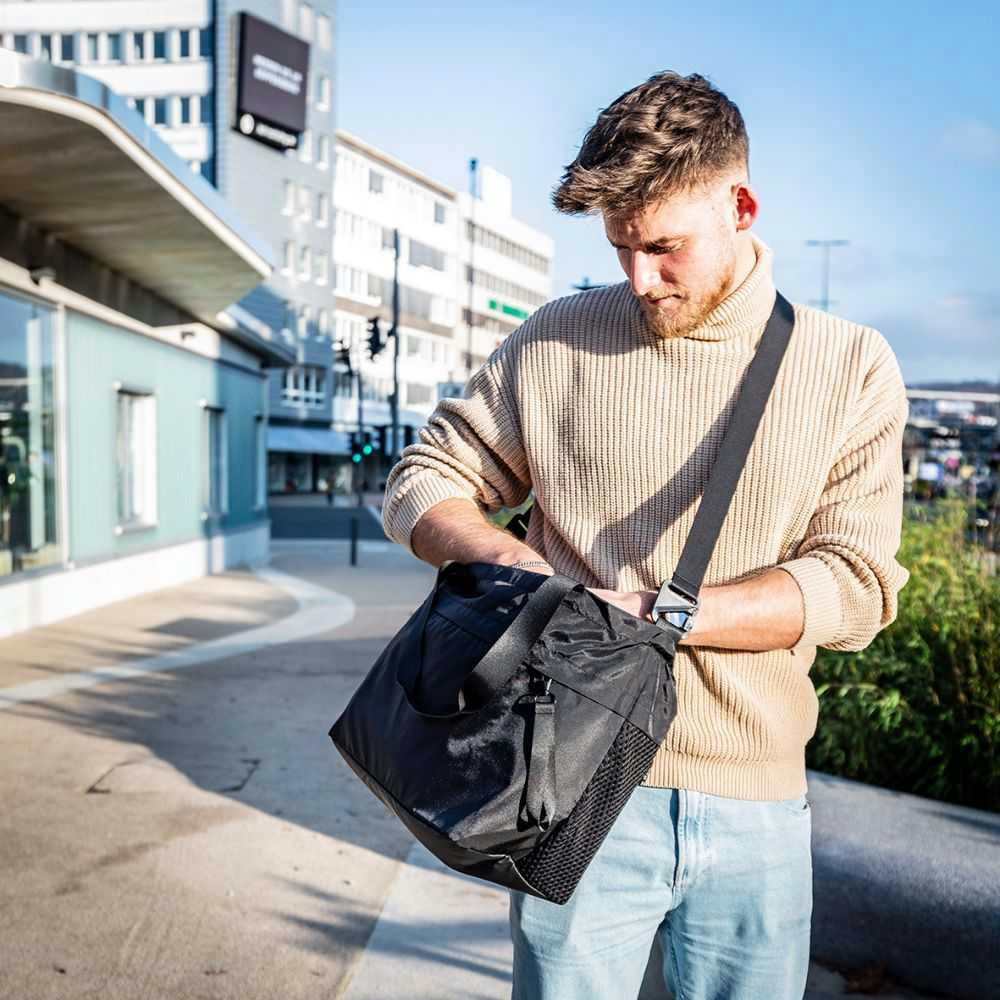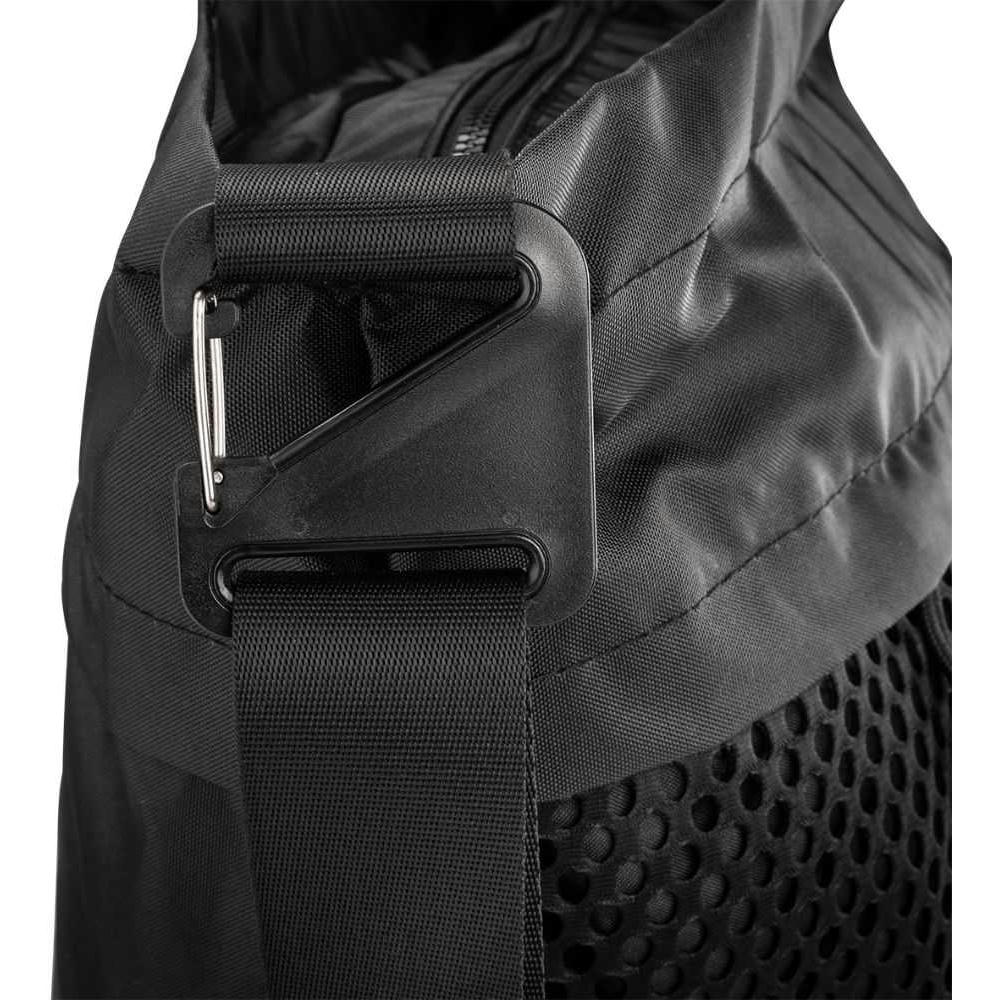 Großes geräumiges Hauptfach mit Reißverschluss, Innenliegendes Laptopfach passend für 17", Zwei Netz-Einsteckfächer innen sowie Einsteckfach mit Klettverschluss und Kunststoff-Haltering für Schlüsselanhänger. Große Reißverschlussvortasche vorne, große Reißverschlussnetztasche hinten. Verstellbarer Schultergurt mit 15 cm breitem Schulterpolster mit Klettverschluss.