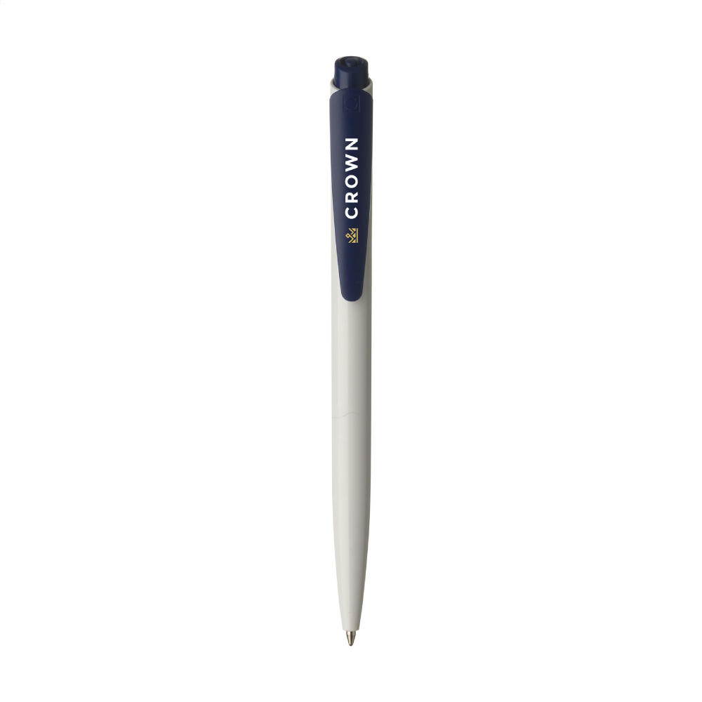 Blauschreibender Kugelschreiber der Marke Senator® in einem zeitlosen Design mit poliertem Gehäuse und großzügigem, farbigen Clip/Druckknopf. Made in Germany.