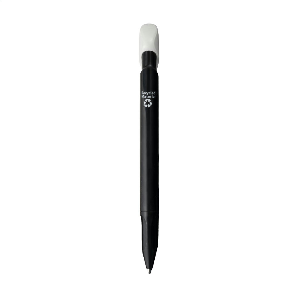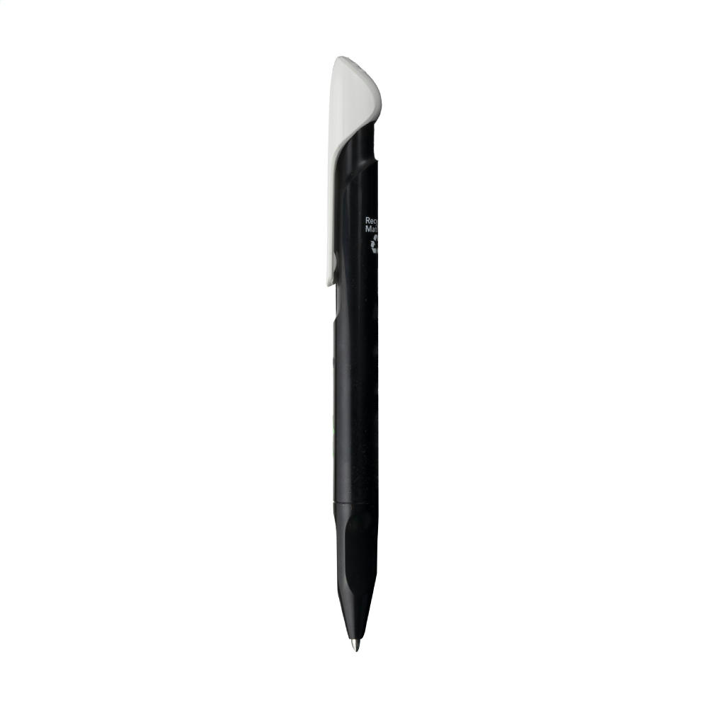 Blauschreibender Kugelschreiber der Marke Senator®. Hergestellt aus 95% recyceltem R-ABS-Material und wunderschön poliert. Der Stift fällt durch seinen ungewöhnlichen Clip und die durchdachte Spitze mit ergonomischem Griff ins Auge. Hergestellt in Europa. Leichte Unebenheiten in der Oberfläche des recycelten Materials sind möglich.