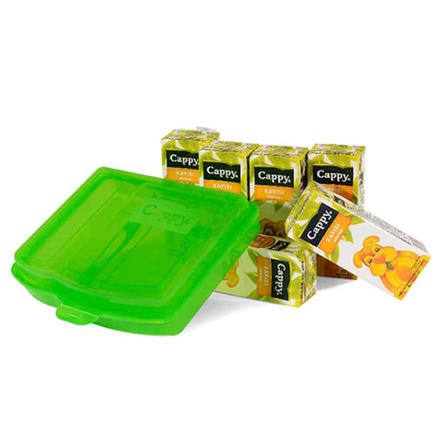 Zum Schulanfang wurde eine zweigeteilte Jausenbox produziert, in der 6 Produkteinheiten Platz finden. Die Jausenbox war im Listenpreis der 6 Produkteinheiten inbegriffen.