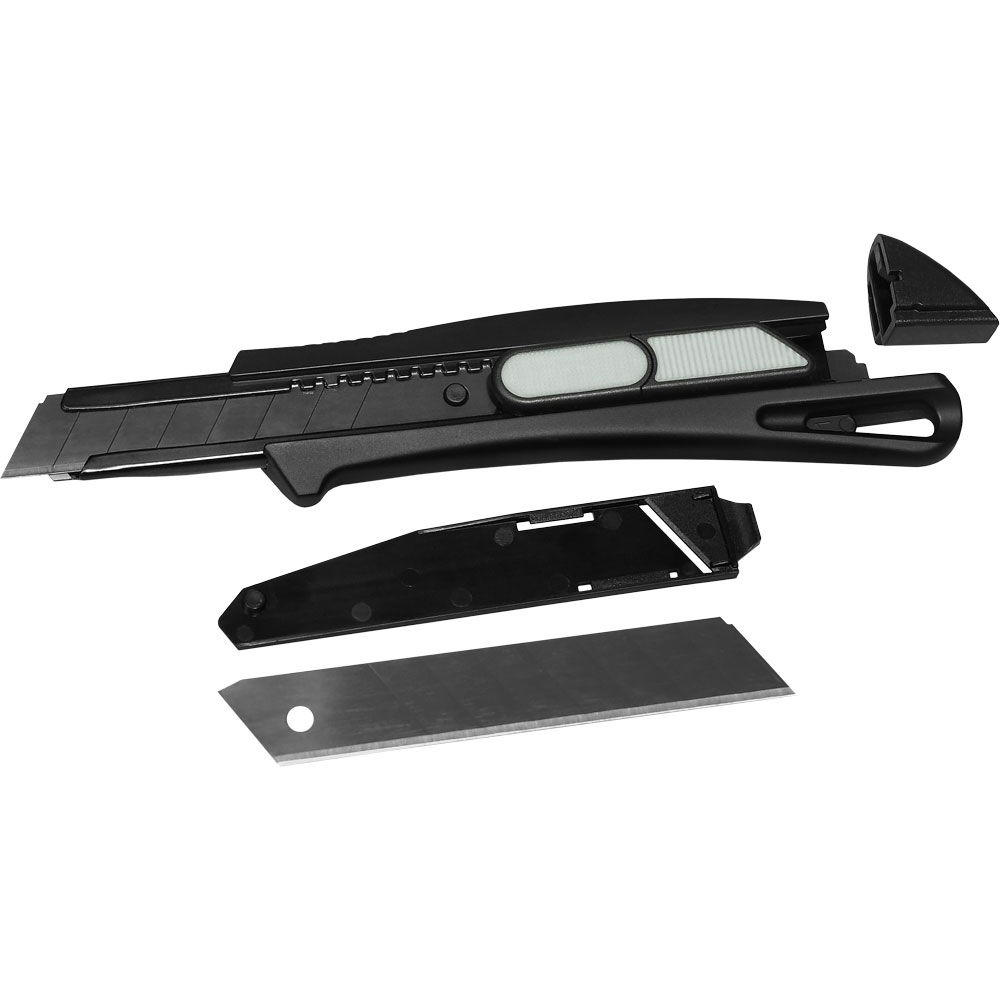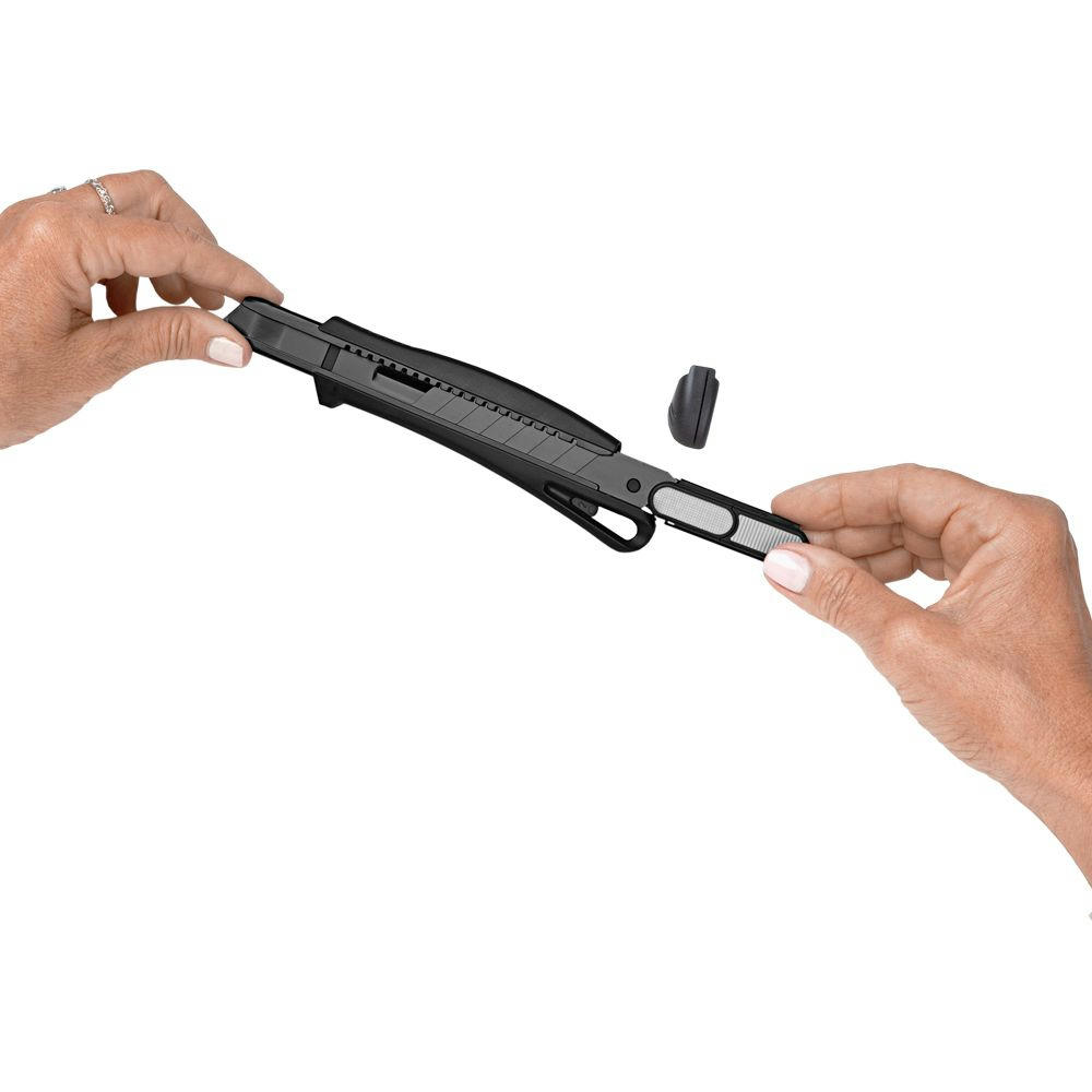 Das Sicherheitsmesser erfüllt höchste Ansprüche im Bereich Arbeitsschutz und Arbeitssicherheit. Es ist ein 2-Funktionen-Messer: Der integrierte Federrückzug sorgt für automatischen Klingenrückzug. Alternativ ist ebenso die feststehende Nutzung mittels Rasterautomatik möglich.