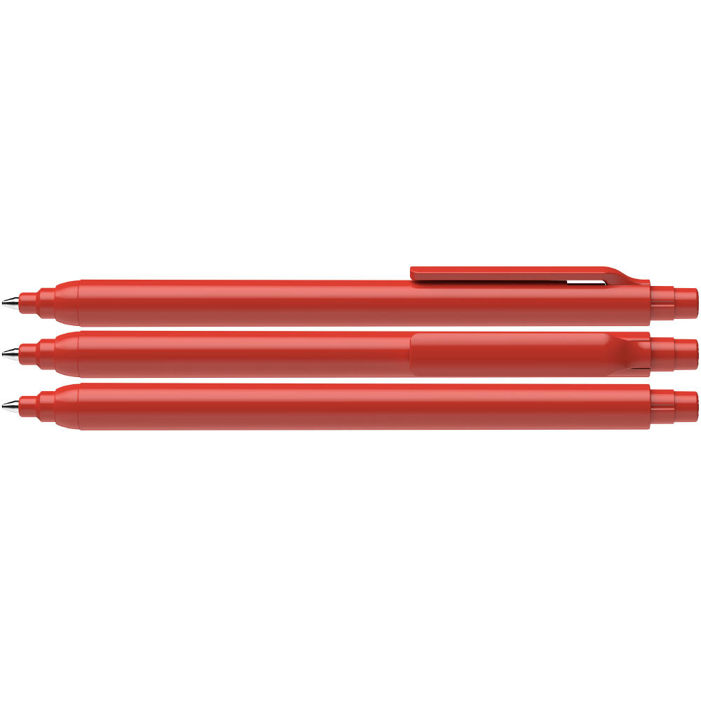 Druckkugelschreiber aus transparentem oder opakem Kunststoff mit glänzender Oberfläche. Abgestufter Drücker und Spitze. Ausgestattet mit Schneider-Mine 774 M. Produkt mit finanziellem Klimabeitrag: Kompensation in Höhe der unvermeidbaren Emissionen in ein zertifiziertes Klimaschutzprojekt. Gehäuse: rot. Schreibfarbe: blau.