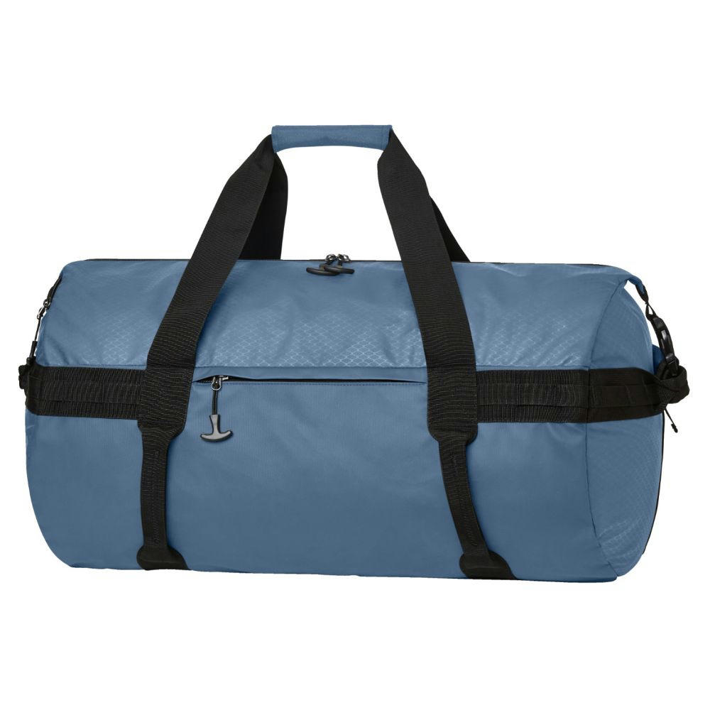 komfortable Sport-Reisetasche mit Rucksackfunktion; geräumiges Hauptfach mit 2-Wege-Reißverschluss und seitlichen Steckverschlüssen; seitliches Reißverschlussfach; Reißverschluss-Vortasche; umlaufendem Funktions- Schlaufenband; diverse Handgriffe; Tragegriffe und versteckte, gepolsterte und längenverstellbare Schultergurte