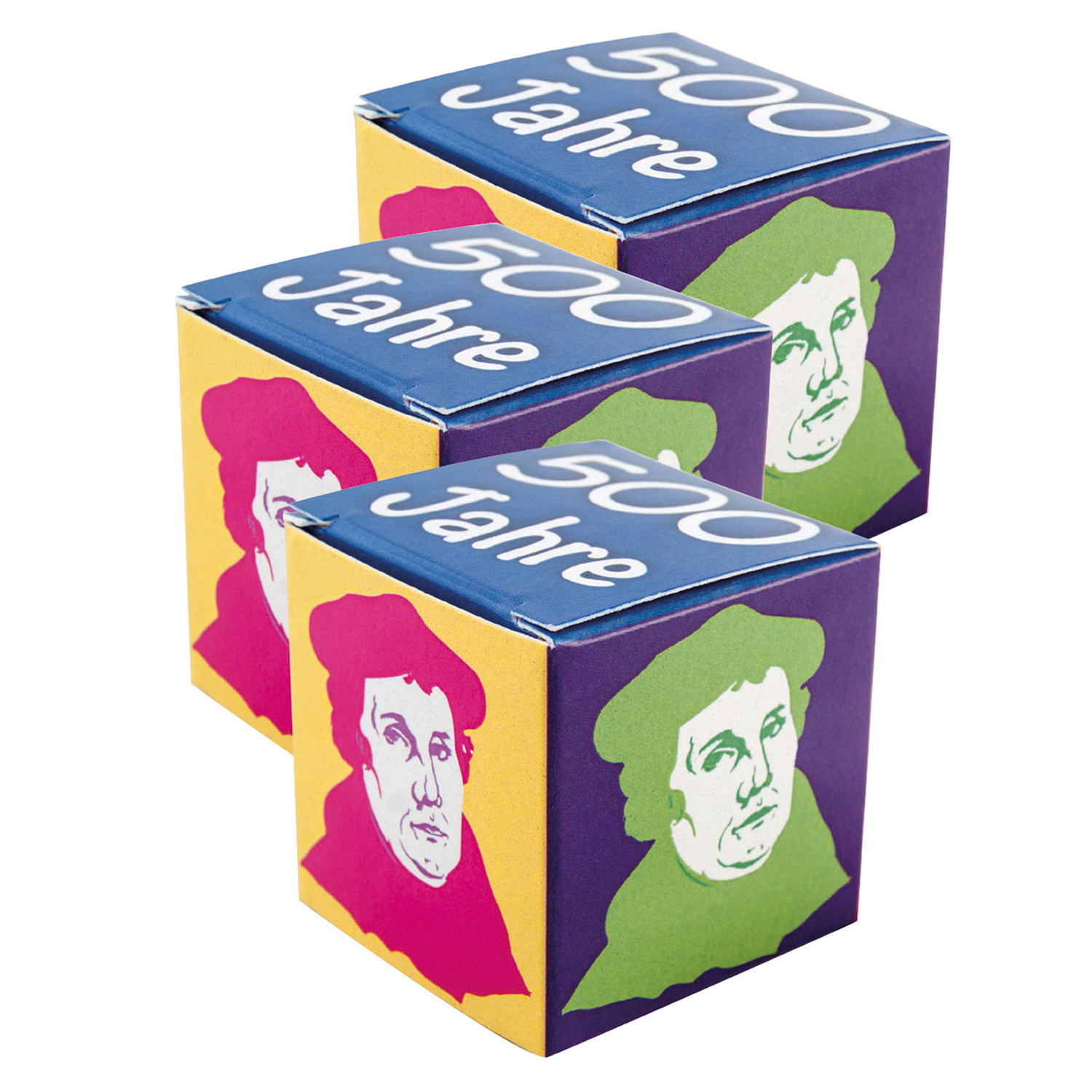 Kleine, quadratische Box mit Dispenser. Mögliche Füllungen A: Salmiak-Splitter, Mint-Pastillen zuckerfrei (VEGAN!), Schoko-Konfetti, Traubenzucker-Pastillen (VEGAN!) oder Schoko-Linsen farblich sortiert (verfügbare Farben: schwarz, grün, lila, türkis, blau, orange, weiß, pink, gelb und rot). Mögliche Füllungen B: Schoko-Linsen in gold, Schoko-Linsen VEGAN oder Schoko-Goldsternchen Inhalt: max. 20 g Haltbarkeit: ca. 12 – 24 Monate (je nach Füllung).