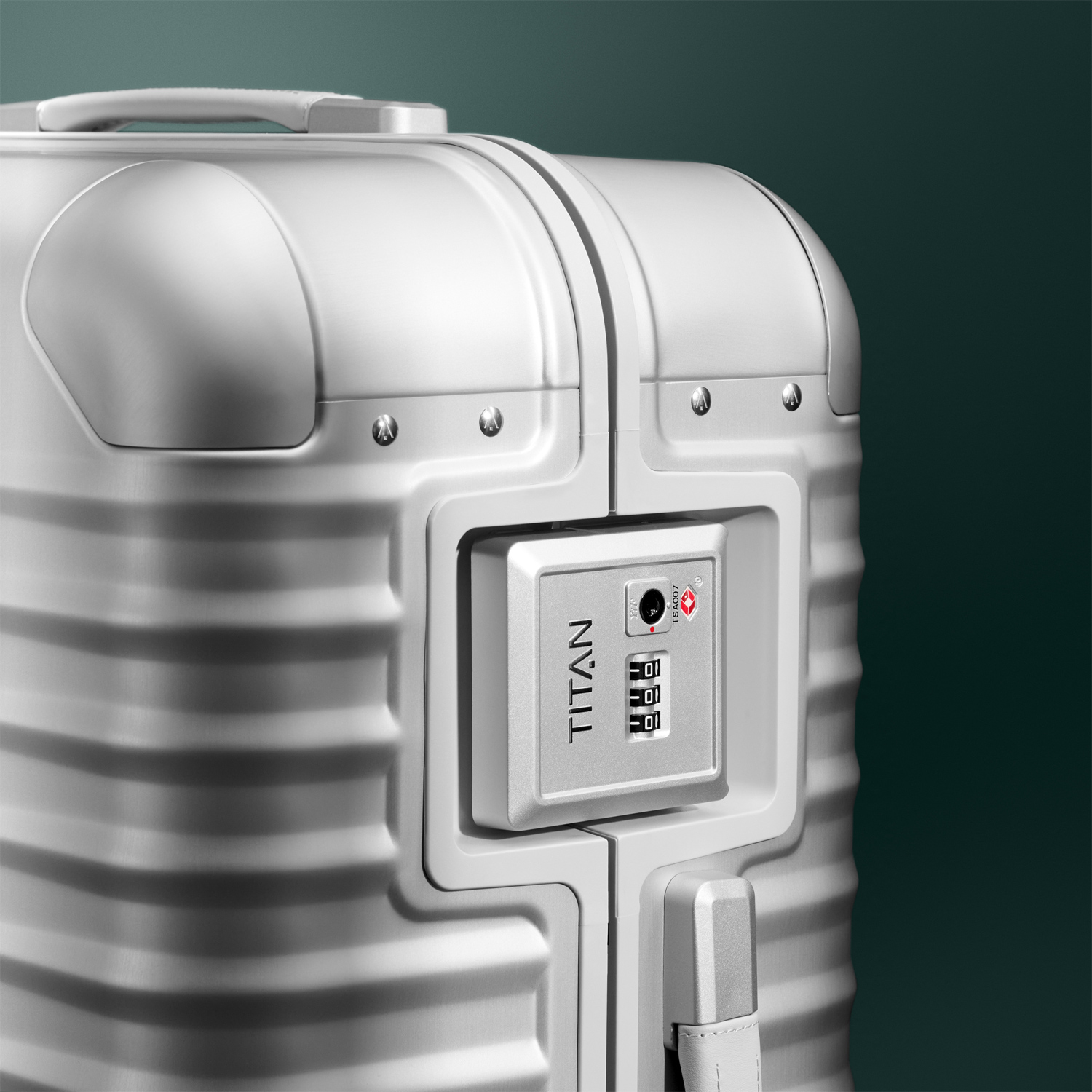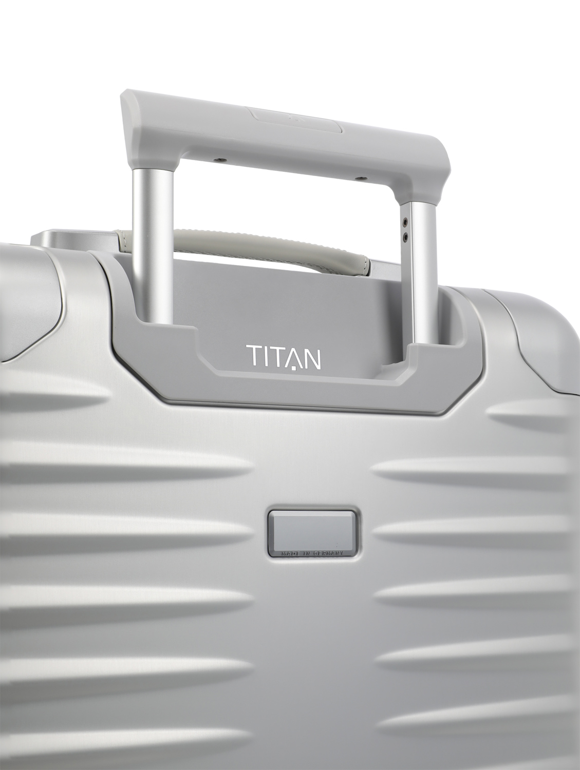 Einzigartiger TITAN Smart Frame im Aluminium-Gehäuse: kein Verbiegen bei hoher Drucklast . Mono-Lock für noch leichteres Handling beim Öffnen und Schließen des Koffers (bei S, bei M und L zwei Schlösser) à zwei extra große TSA-Schlösser für müheloses Handling beim Öffnen und Schließen des Koffers.Stufenlos verstellbarer Teleskopgriff, Griffe aus Echtleder, Innenfutter aus recyceltem Polyester mit hochwertiger Jacquard-Webung. Intelligente Innenaufteilung mit Mesh-Fächern und herausnehmbarer Packplatte, Packgurte in praktischer Y-Shape. Premium-Kugellager-Rollen. Produktspezifische Seriennummer. 10 Jahre Garantie, handgefertigt in Deutschland, 100 % Aluminium.