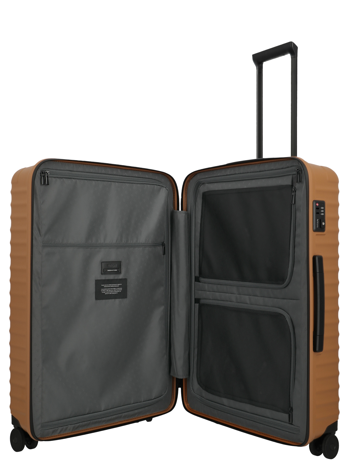 Hochwertiges Design mit höchster Qualität.Speziell entwickelte, besonders matte Oberflächenstruktur für maximale Kratzresistenz. 100 % Polycarbonat. Zweifach verstärkte Schutzecken, für noch mehr Stabilität. Leichtgängiger, wasserabweisender Reißverschluss. Innenfutter aus recyceltem Polyester mit hochwertiger Jacquard-Webung. Intelligente Innenaufteilung mit bis zu drei zusätzlichen Fächern. Herausnehmbare Packgurte in praktischer Y-Shape. Produktspezifische Seriennummer. Ergonomisch geformte Handgriffe. Große, überdurchschnittlich leise Doppelrollen. Made in Germany.