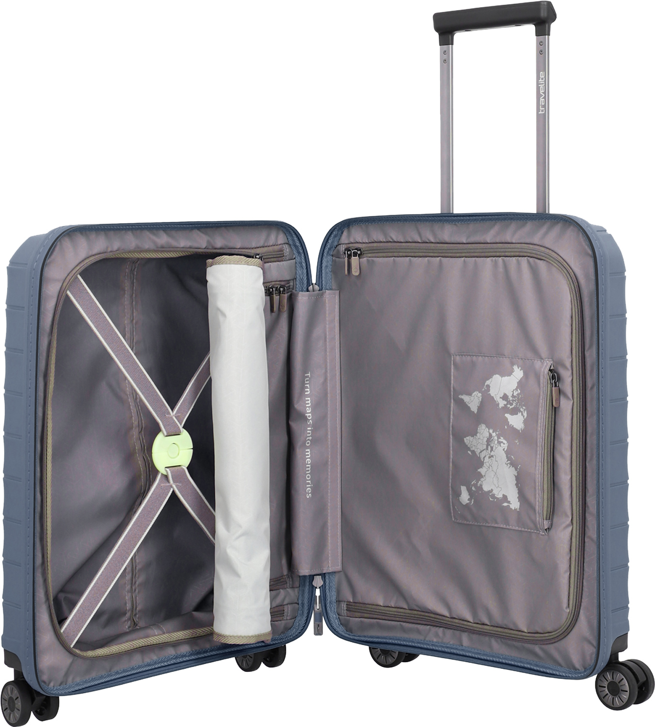 Die Hartschalentrolleys der Serie Mooby sind aus recyceltem Polypropylen (mit Ocean Bound Plastic), das Innenfutter ist aus recyceltem Polyester. Die Oberfläche ist kratzresistent. Alle Trolleys der Mooby-Serie haben ein versenktes TSA Kombinationsschloss und 4 gummierte Doppelrollen.