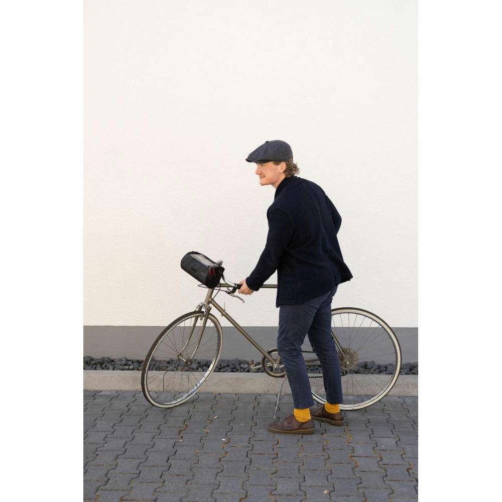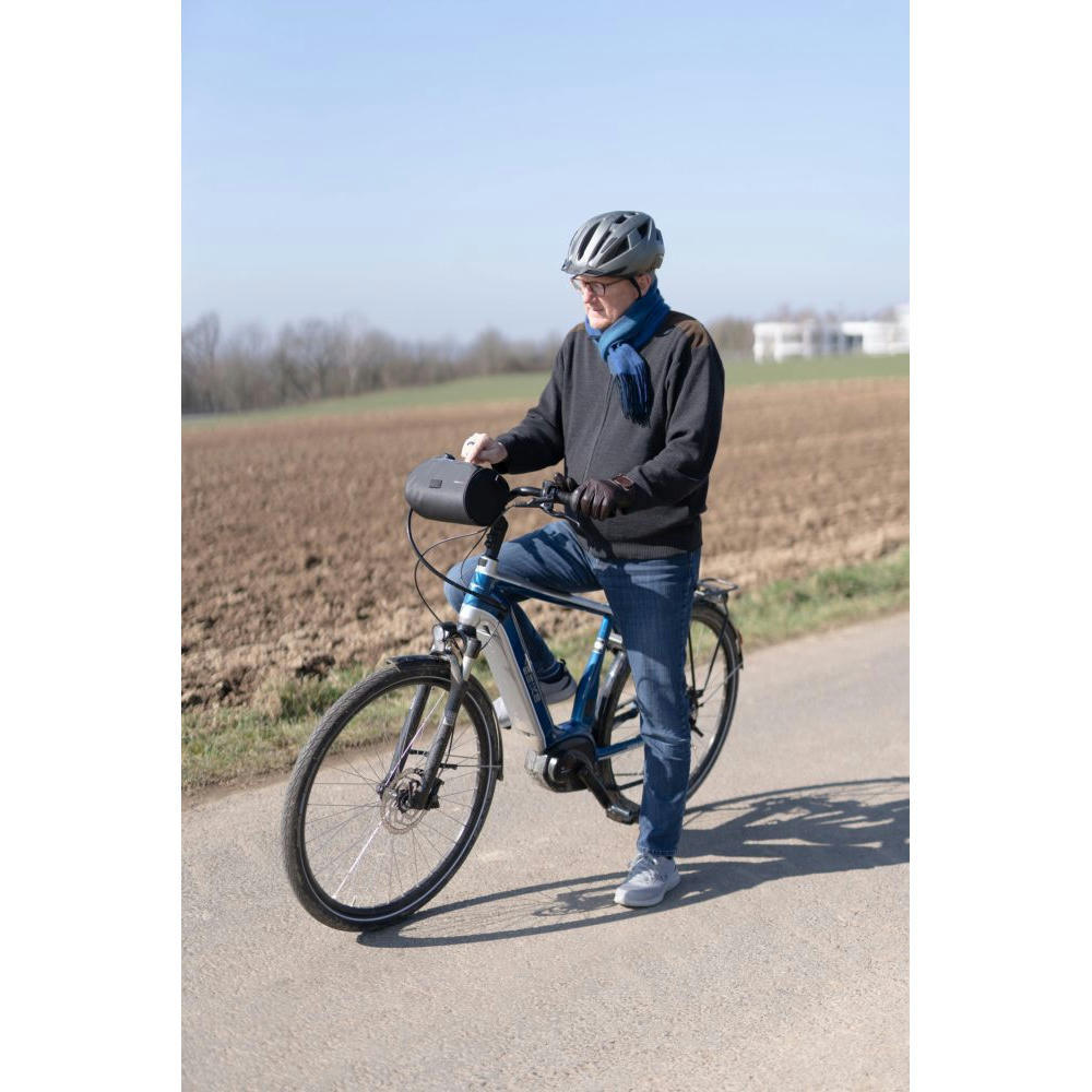 Fahrradtasche für den Lenker, flexible Befestigung mittels 3 Klettverschlussbändern am Lenker, geräumiges Hauptfach mit Reißverschluss, inkl. Netzfach (z.B.: für Powerbank), Touchscreen-Sichtfenster passend für gängige mobile Geräte zur Navigation, seitlich geöffnet zum Hauptfach (Laden via Powerbank), abnehmbarer, verstellbarer Schultergurt, Schlaufe zur Befestigung des Vorderlichts, Kapazität ca. 4 Liter, Tragkraft bis zu 5 kg, schützt Inhalt vor Spritzwasser (Wasserdichtheitsgrad IPX4) , formstabil durch verstärkte Kanten.