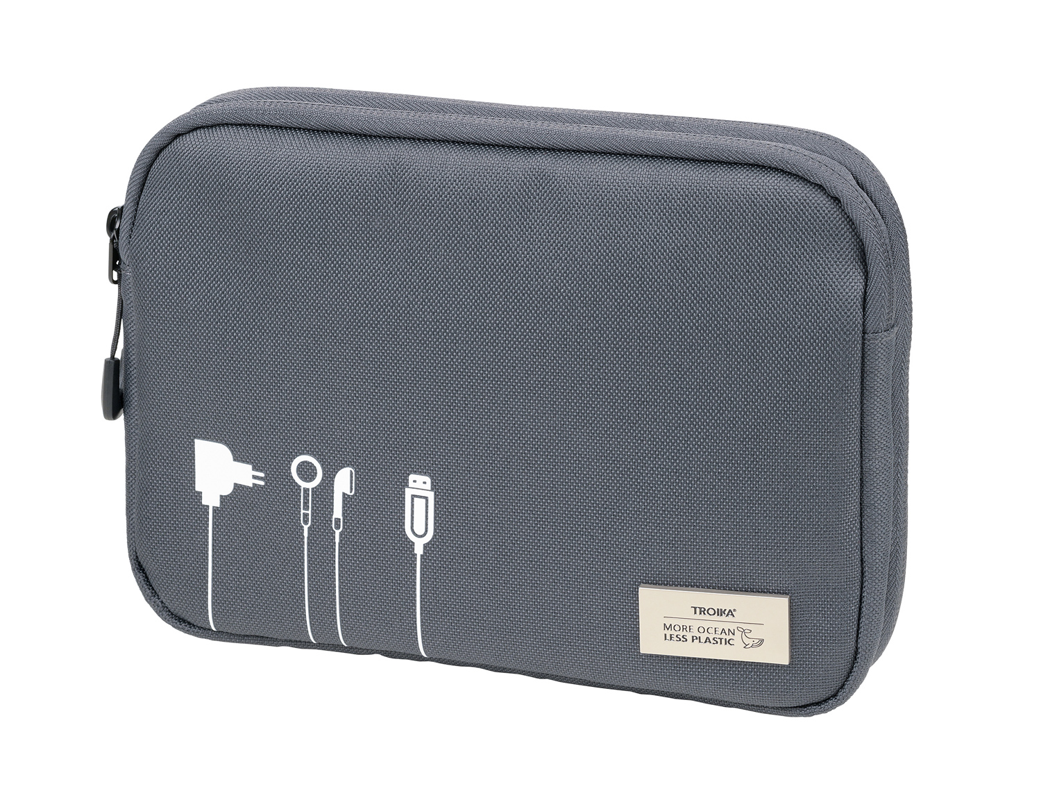 Kabeltasche für Elektronikzubehör, 1 Fach mit 2-Wege Reißverschluss und 6 Netzfächern in 2 verschiedenen Größen, Hauptfach inkl. Geheimfach für mini Tracking-Geräte (z.B. APPLE AirTag®), Einschubfach, Außentasche mit Reißverschluss.
