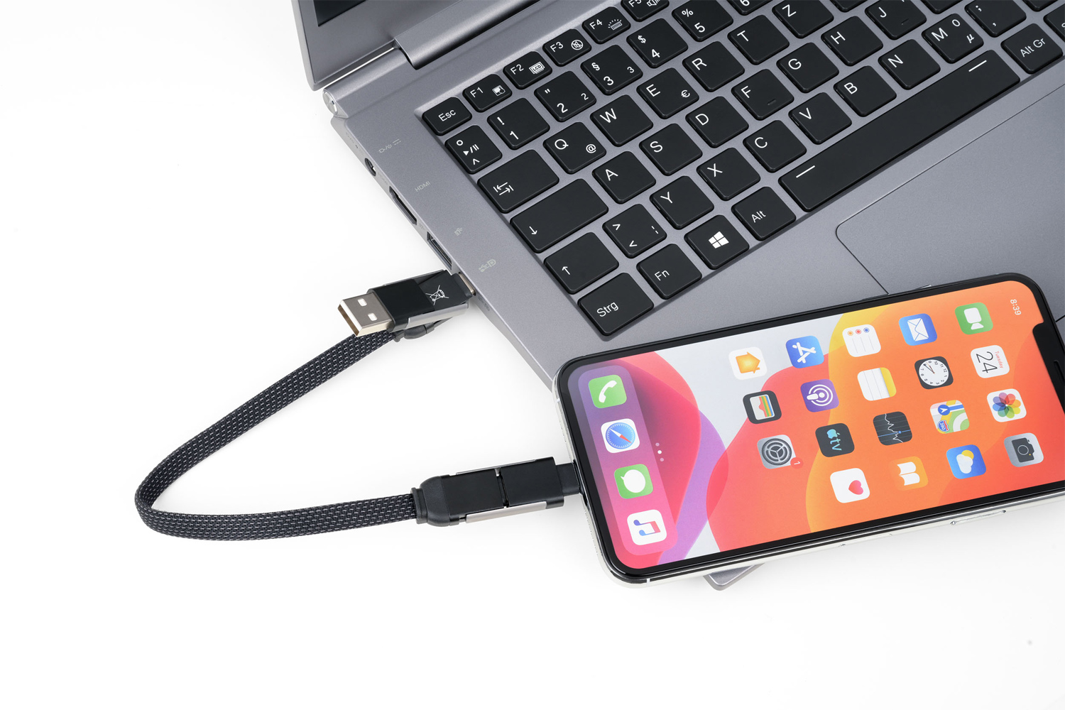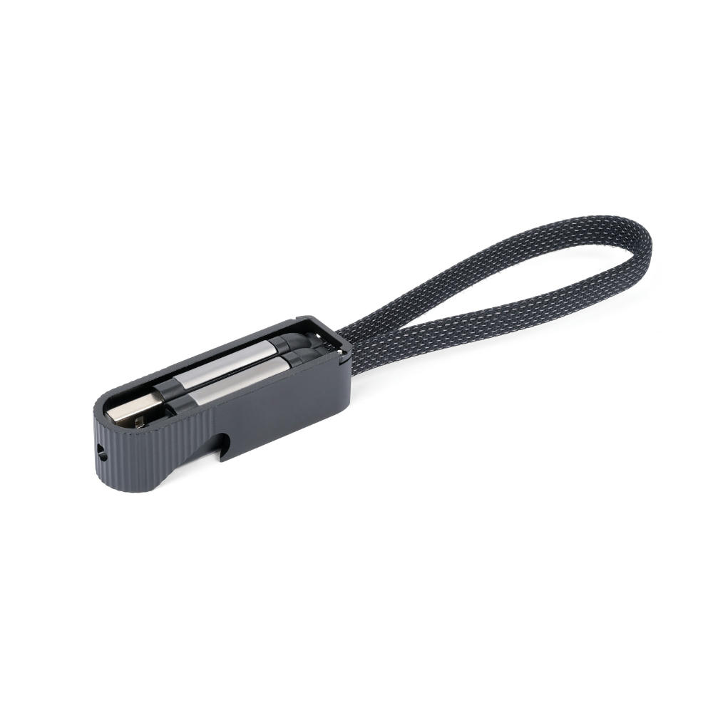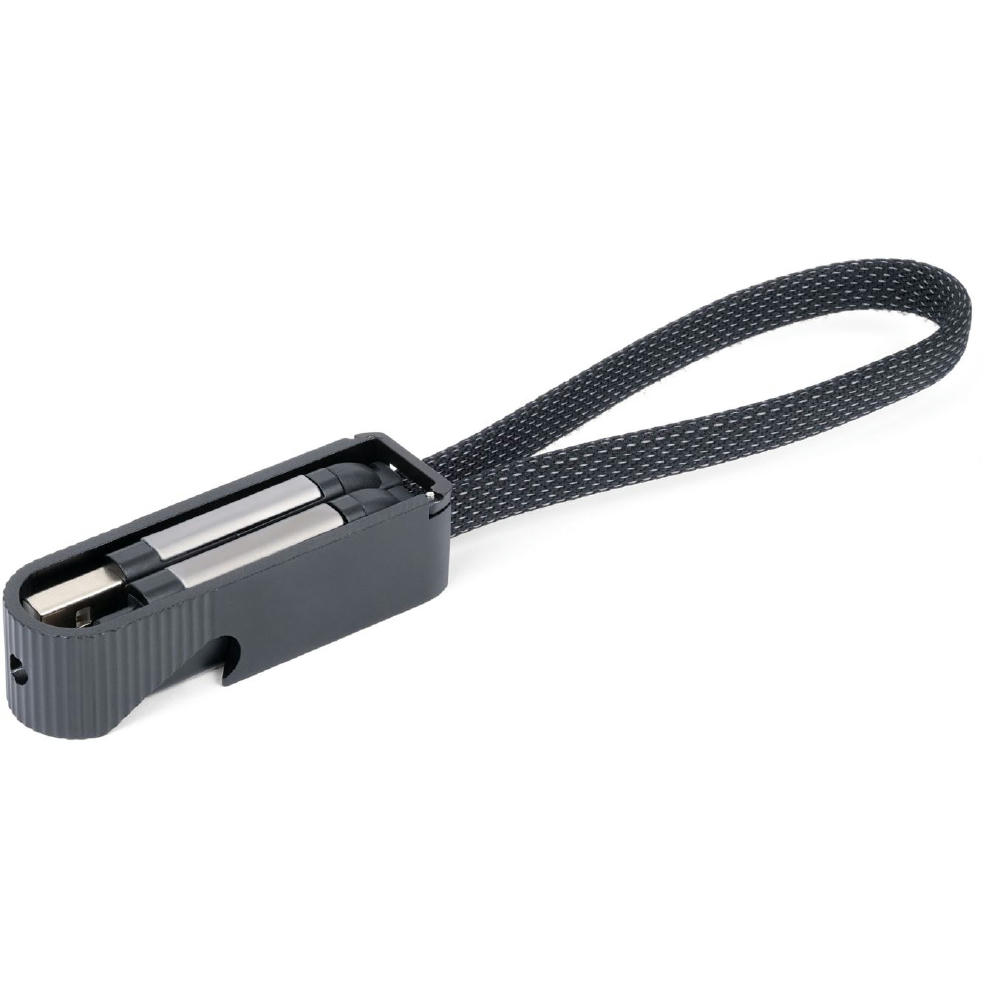 Schnellladekabel mit Flaschenöffner für unterwegs, USB/USB-C auf Lightning oder USB-C, mit Datenübertragungsfunktion, Kabel textilummantelt.