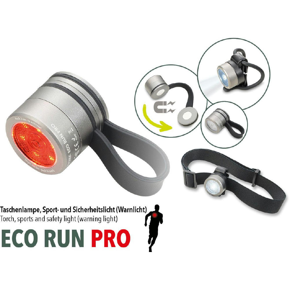 Taschenlampe Sport- und Sicherheitslicht (Warnlicht), 5 Leuchtfunktionen: 100% Licht + 50% Licht (weißes LED-Licht), durchgehend leuchtend, schnell + langsam blinkend (rotes LED-Licht), Zubehör: 1 Gürtelclip, 1 flexibles Silikonband zur Befestigung (z.B. am Fahrrad, Rucksack), elastisches Band zur Verwendung als Stirnlampe, Magnetverschluss mit Silikonband zur Befestigung an der Kleidung, etc., Lithium Polymer Batterie 200 mAh, wiederaufladbar über USB-C (3,7 Volt), inkl. Ladekabel, Überlade-/Tiefentladungsschutz.