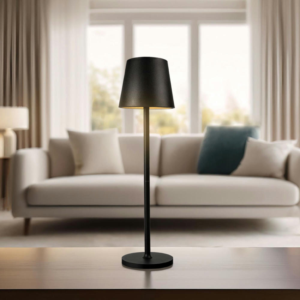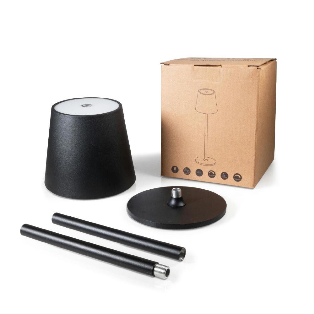 Dimmbare LED-Akku-Tischleuchte für die Terrasse und den Wohnbereich mit einer wählbaren Farbtemperatur von 3000K/4500K/6000K. Ein- und Ausschalten durch Berühren der Touchfläche des Lampenschirms. Die Akkulampe kann mit dem mitgelieferten USB-Kabel aufgeladen werden. Tischbeleuchtung für 12 Stunden bei maximaler Helligkeit und bis zu 24 Stunden bei Dimmung (Li-Ion-Akku, 3.600 mAh).
