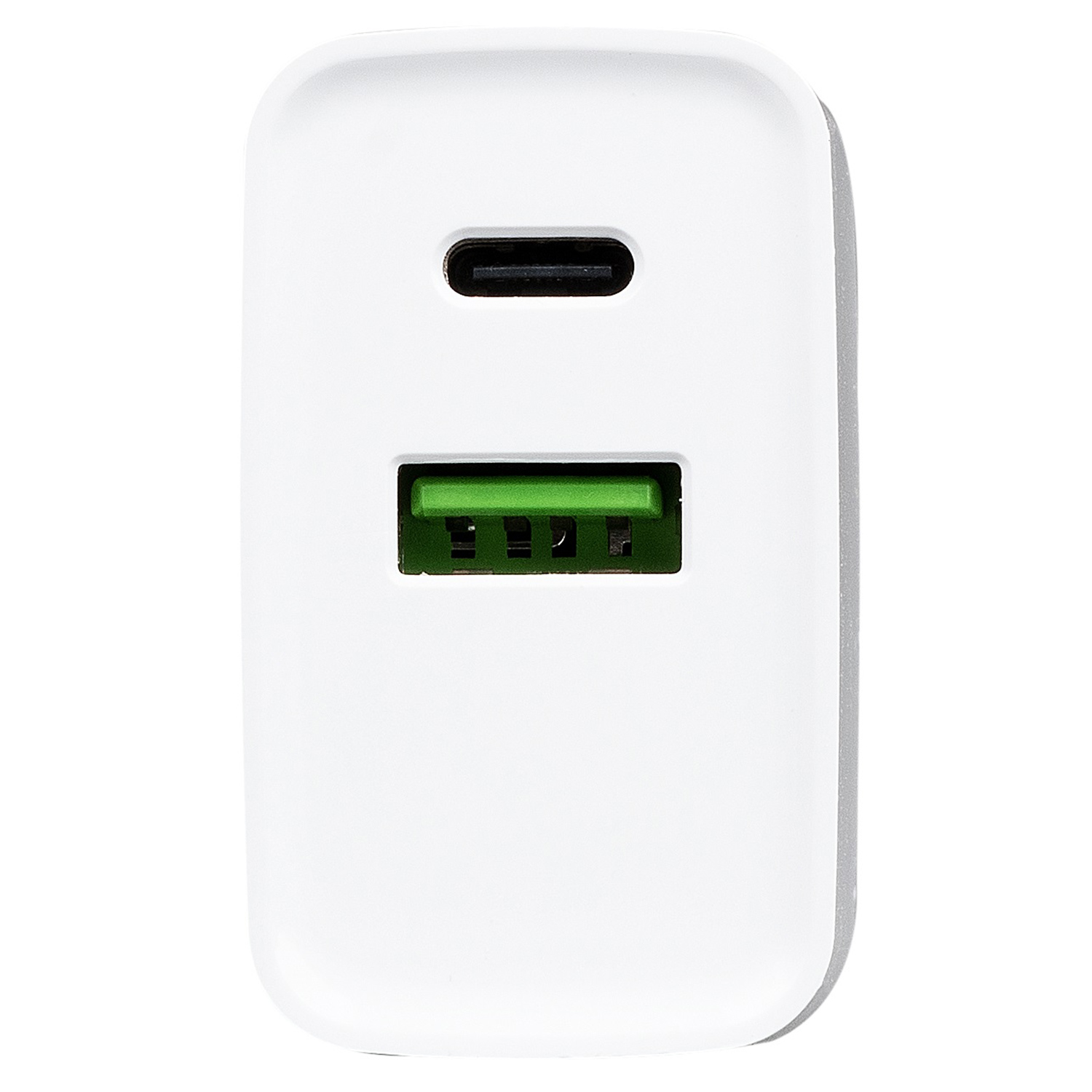 Wandladegerät mit 20 W Gesamtleistung (QC3.0 Quickcharge und PD 20 W), Input: 100–240 V, 50/60Hz 0,5A, Output USB-A: 5V/3A, 9V/2A, 12V/1,5A (18W max.), Output: Type-C 5V/3A, 9V/2,22A, 12V/1,66A (20W max.), USB-A + Type-C kombiniert: 17W max., Input: 100–240 V, 50/60Hz 0,5A, Output USB-A: 5V/3A, 9V/2A, 12V/1,66A (20W max.), Output: Type-C 5V/3A, 9V/2,22A, 12V/1,66A (20W max.), USB-A + Type-C kombiniert: 17W max.