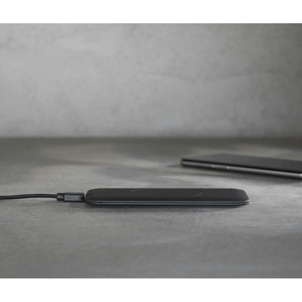 Drahtlose, Qi- zertifizierte, induktive Ladestation. Wireless- Charger mit sensationell weicher Oberfläche. Inkl. Ladekabel 25 cm (USB-Micro-USB).