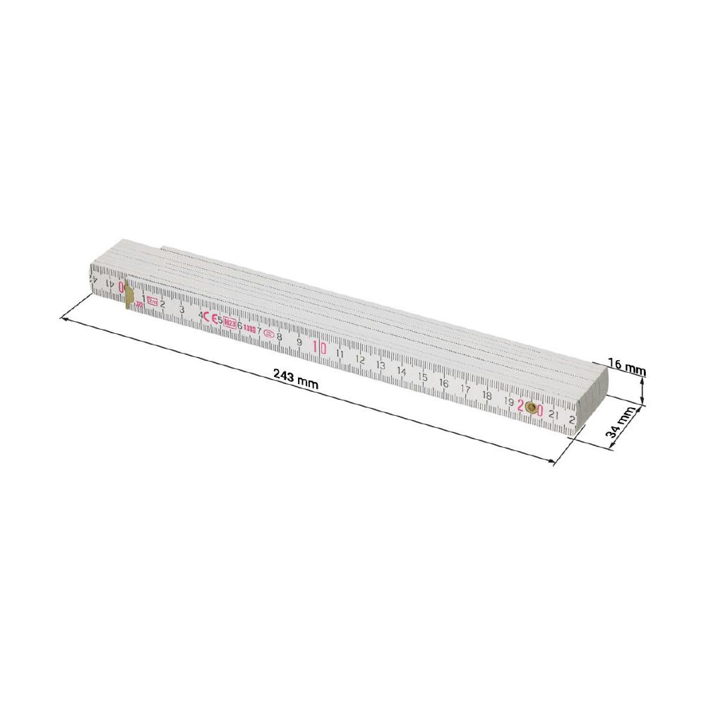 Hochwertiger weißer Glieder-Maßstab aus Buchenholz. Hohe Qualität durch die metallenen Gelenke und die sichtbaren Nieten. Länge: 2 m.