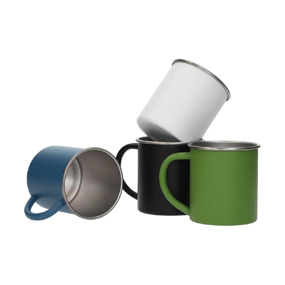 Der bruchsichere Becher aus Edelstahl mit abgerundeten Trinkrand ist der ideale Begleiter für Outdoor-Aktivitäten und Camping-Urlaube. Das klassische Design ist in elegantem Finish in den Farben blau, grün, schwarz und weiß erhältlich, die Innenwand ist silberfarben. Er kann für kalte und warme Getränke verwendet werden. Füllmenge: 340 ml.