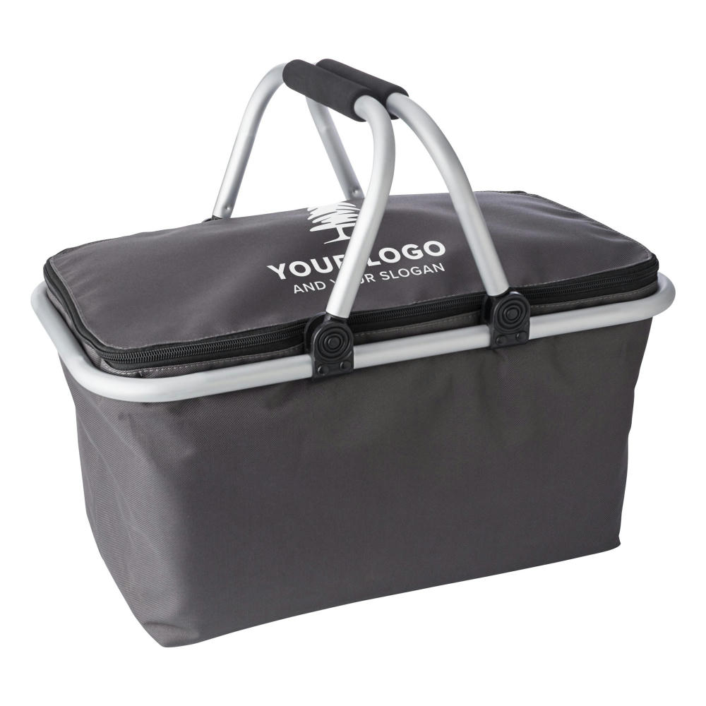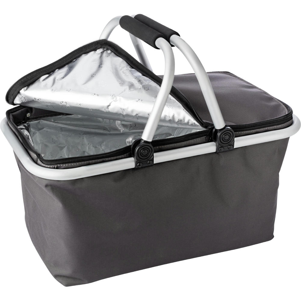 Einkaufskorb aus Polyester (600D), klappbar, mit zwei Aluminium-Tragegriffen, Reißverschluss und Kühlfunktion.