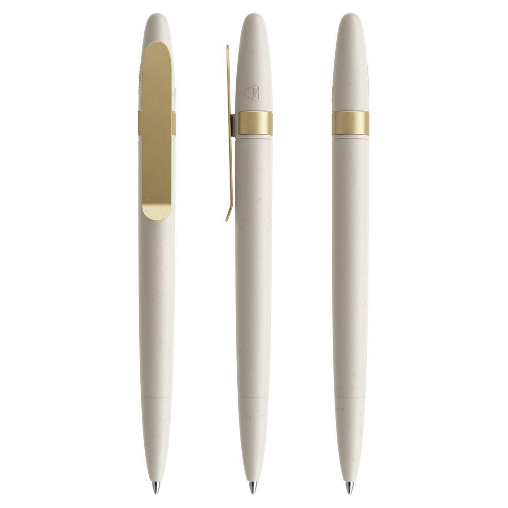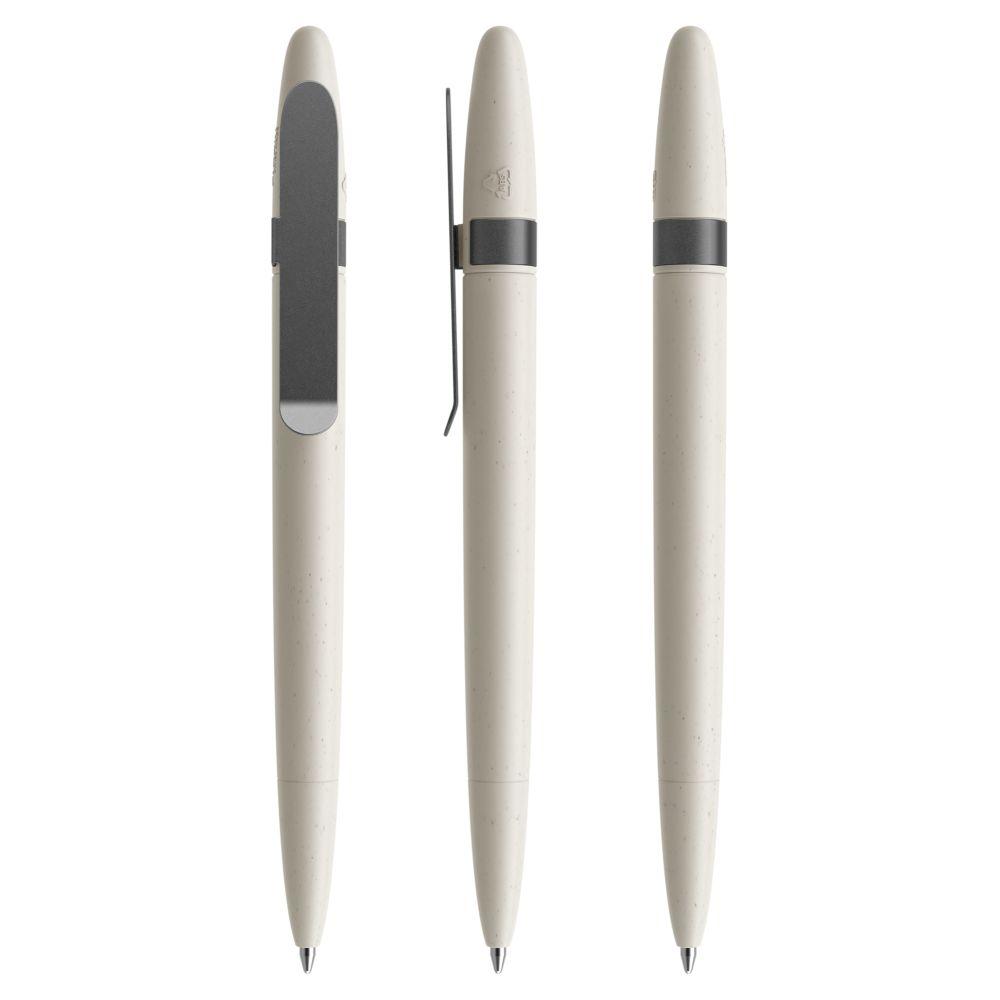 Der DS5 Metall-Clip setzt auf Evolution. Seine klassische Form ist klar erkennbar, aber er wirkt frisch und überraschend. Sein aus einem Stück gefertigter und mit viel Liebe zum Detail gestalteter Clip schwebt mit eleganter Leichtigkeit über der ikonischen Form des DS5. Der Clip ist ein kleines Meisterstück, das jedes Logo auf vier edel matt satinierten Finishs von Gold bis Graphit sehr wertig in Szene setzt. In der Ausführung Shell (TSE) überrascht der DS5 Metall-Clip mit einem nachhaltigen und kommunikationsstarken Gehäuse. Es besteht zu 30% aus dem Kalk recycelter Muscheln, gewonnen z.B. aus den Schalen französischer Gourmet-Austern, die restlichen 70% sind Kunststoff, der zu 50% recycelt oder aus Eigenabfällen regeneriert wurde. Der formschöne Metall-Clip liegt auf dem naturbelassenen Gehäuse wie ein Surfbrett auf der perfekten Welle. Man kann das Meer fast rauschen hören. Die Standardausführung ist mit Silber satiniertem Clip ausgestattet. Als Option stehen Clips in galvanisiertem Gold, Schwarz, Graphit oder Sideral Blue zur Auswahl. Ausgestattet mit der umweltfreundlichen auswechselbaren FLOATING BALL® lead free-Großraummine 1.0, Schreiblänge 5.000 m, Schreibfarbe Blau oder Schwarz.
