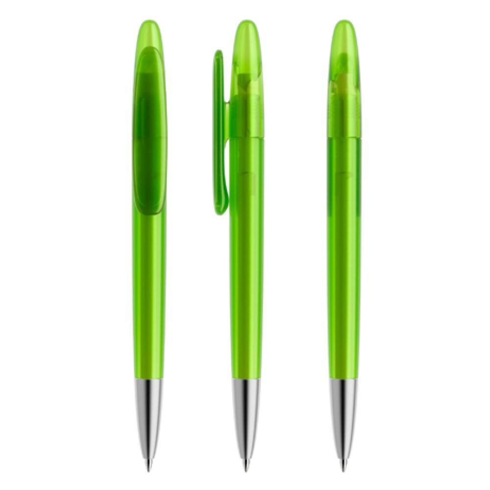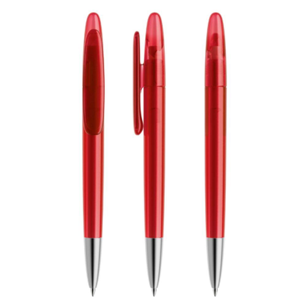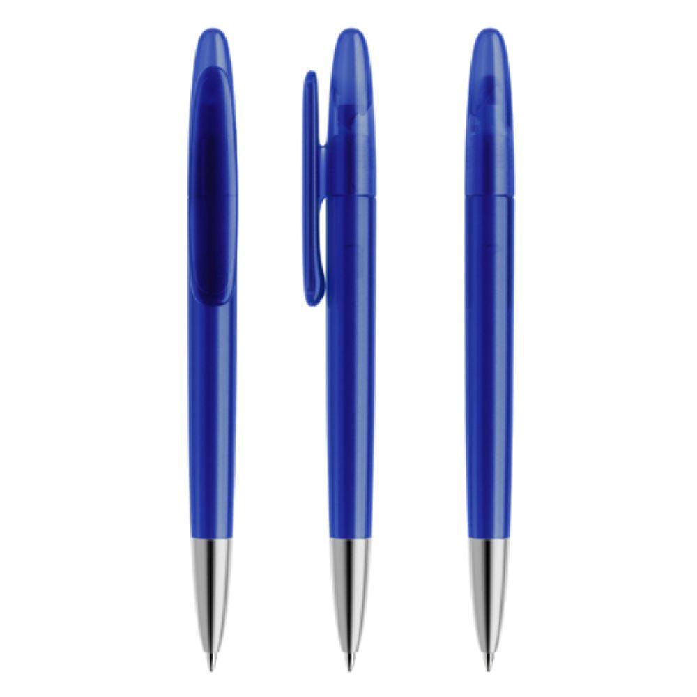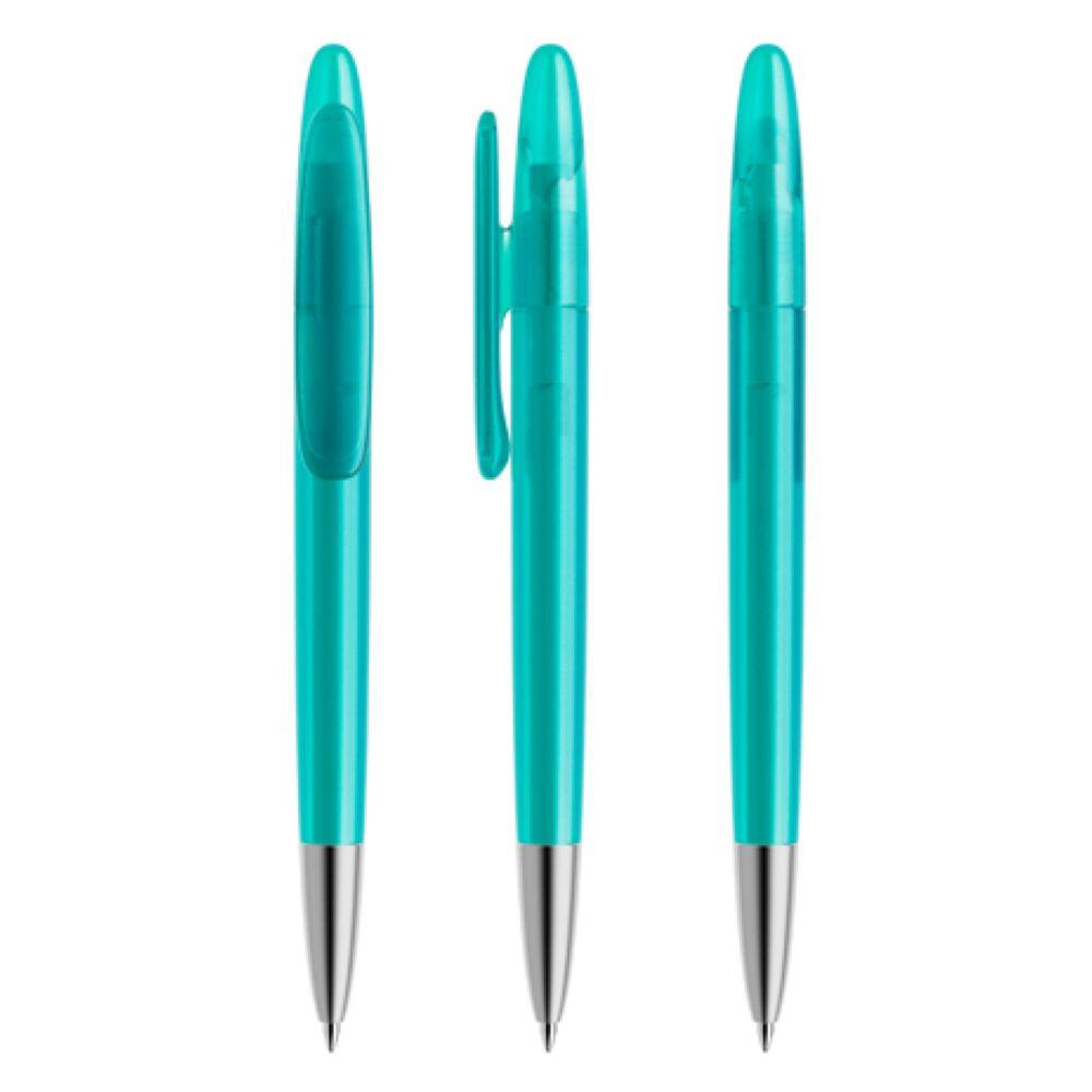 Er hält, was er verspricht: In der Rückansicht wird in seiner Form die Zahl sichtbar, die ihm den Namen gibt. Wenn es ein bisschen mehr sein soll, dann ist der DS5 der richtige. Und das in einem mit renommierten Preisen ausgezeichneten Design. In der Ausführung mit gefrostetem Gehäuse und satinierter Metallspitze (TFS) lieferbar in neun Standardfarben, hergestellt mit einem Rezyklatanteil von 50%, gekennzeichnet mit dem internationalen Recycling-Symbol. Sondergehäusefarben ab 10.000 Stück. Drei Druckflächen für Werbeanbringungen stehen zur Verfügung. Ausgestattet mit der umweltfreundlichen auswechselbaren FLOATING BALL® lead free-Großraummine 1.0, Schreiblänge 5.000 m, Schreibfarbe Blau oder Schwarz.