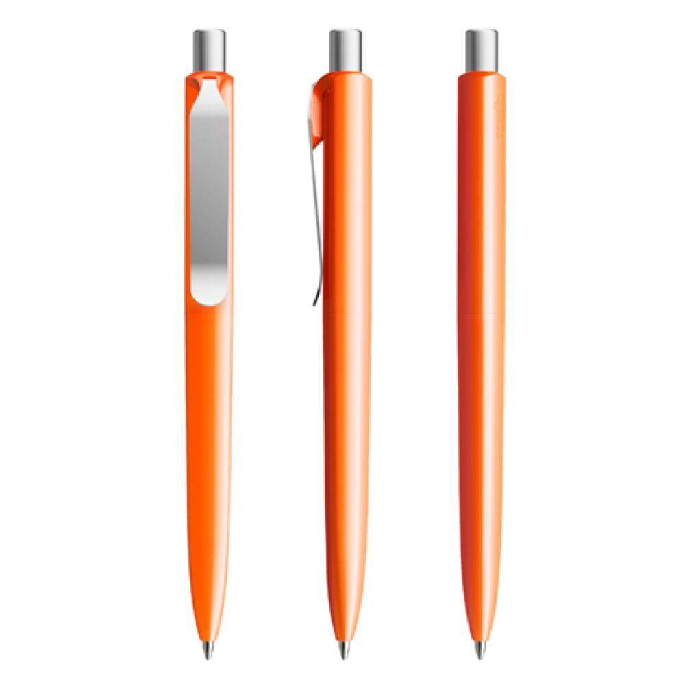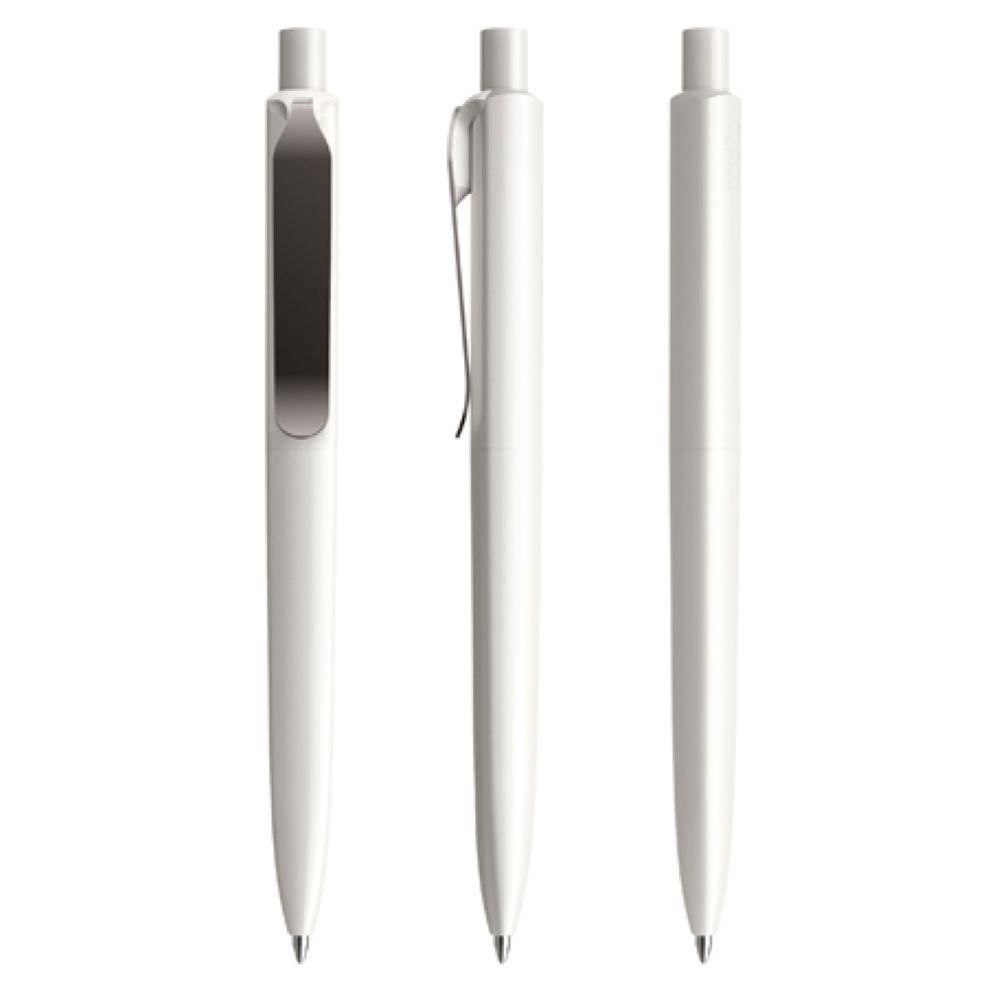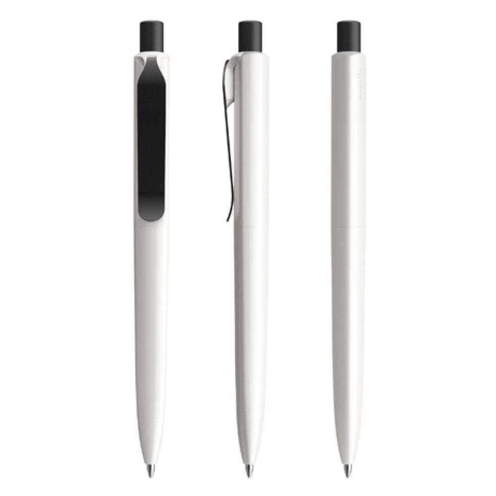 Die Ikone eines klassischen Schreibgerätes. Wertige Clip-Druckknopf-Kombinationen aus Metall machen den DS8 Metall-Clip noch vielseitiger. Ein ausgewogener Material-Mix aus Metall und Kunststoff, der Marken gekonnt in Szene setzt. Metall-Clips in verschiedenen Finishs verleihen ihm einen luxuriösen Touch. Die farblich absetzbaren Clip-Holder bieten eine Möglichkeit, neben der Primärfarbe auch die Zweitfarbe der Corporate Identity harmonisch umzusetzen. In der Ausführung mit vollfarben poliertem Gehäuse (PSP) lieferbar in vier Standardfarben, hergestellt mit einem Rezyklatanteil von 100% (Schwarz und Weiß) oder 50% (alle anderen Farben), gekennzeichnet mit dem internationalen Recycling-Symbol. Sondergehäusefarben ab 5.000 Stück. Fünf Druckflächen für Werbeanbringungen stehen zur Verfügung. Die Standardausführung ist mit Silber satiniertem Clip und poliertem oder satiniertem Metalldruckknopf ausgestattet. Alternativ stehen satinierte Metallclips und Metalldruckknöpfe in galvanisiertem Schwarz oder Graphit zur Auswahl. Ausgestattet mit der umweltfreundlichen auswechselbaren FLOATING BALL® lead free-Großraummine 1.0, Schreiblänge 5.000 m, Schreibfarbe Blau oder Schwarz.