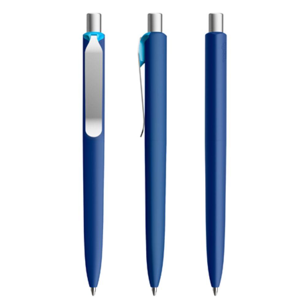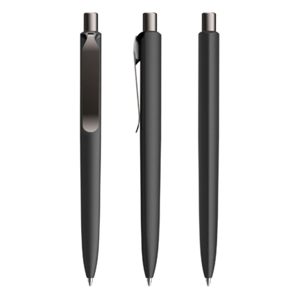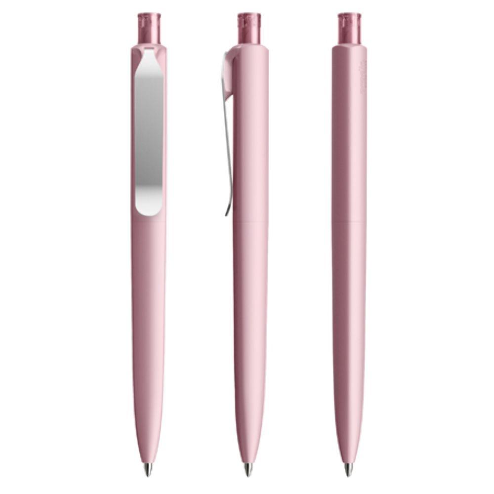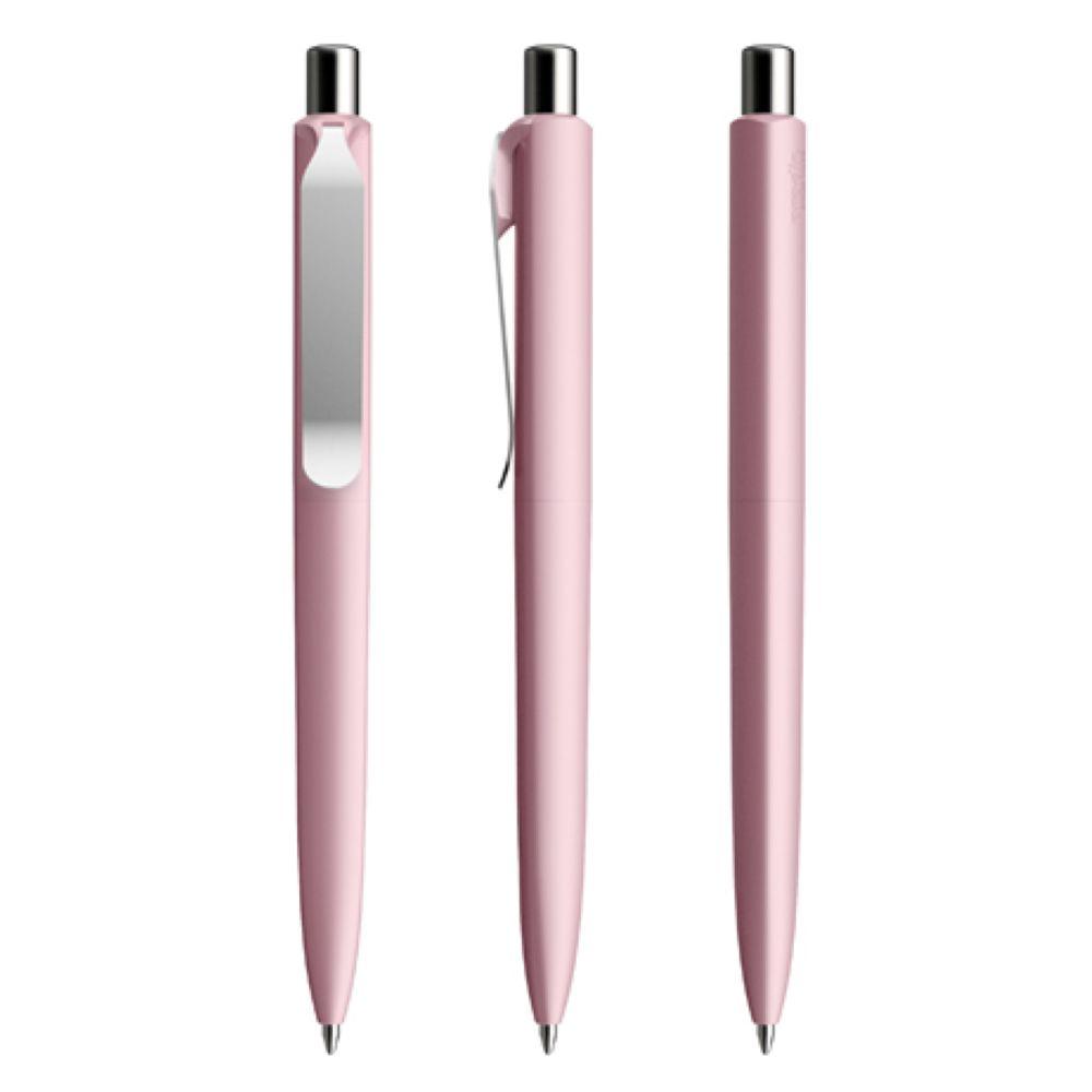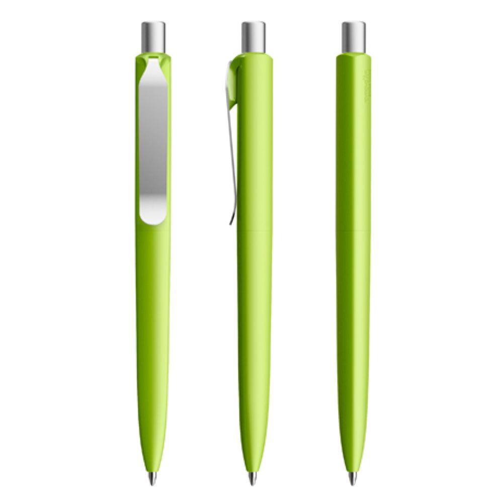 Die Ikone eines klassischen Schreibgerätes. Wertige Clip-Druckknopf-Kombinationen aus Metall machen den DS8 Metall-Clip noch vielseitiger. Ein ausgewogener Material-Mix aus Metall und Kunststoff, der Marken gekonnt in Szene setzt. Metall-Clips in verschiedenen Finishs verleihen ihm einen luxuriösen Touch. Die farblich absetzbaren Clip-Holder bieten eine Möglichkeit, neben der Primärfarbe auch die Zweitfarbe der Corporate Identity harmonisch umzusetzen. In der Ausführung mit Schaft in Soft Touch-Oberfläche (PSR) lieferbar in zehn Standardfarben, hergestellt mit einem Rezyklatanteil von 100% (Schwarz) oder 50% (alle anderen Farben), gekennzeichnet mit dem internationalen Recycling-Symbol. Sondergehäusefarben ab 5.000 Stück. Fünf Druckflächen für Werbeanbringungen stehen zur Verfügung. Die Standardausführung ist mit Silber satiniertem Clip und poliertem oder satiniertem Metalldruckknopf ausgestattet. Alternativ stehen satinierte Metallclips und Metalldruckknöpfe in galvanisiertem Schwarz oder Graphit zur Auswahl. Ausgestattet mit der umweltfreundlichen auswechselbaren FLOATING BALL® lead free-Großraummine 1.0, Schreiblänge 5.000 m, Schreibfarbe Blau oder Schwarz.