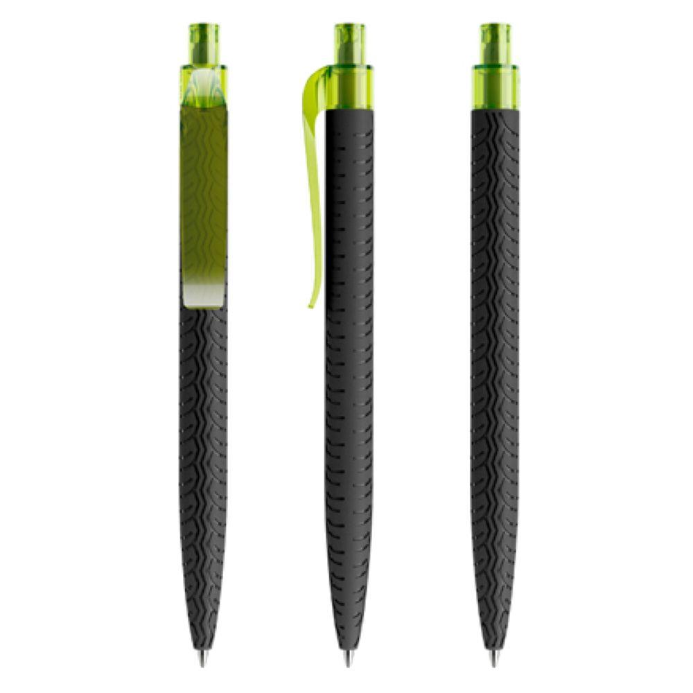 Haptik ist die neue Optik. Der QS03 zeigt eindrücklich, wie sich die 3D-Oberflächen der QS-Kollektion mit den typischen Merkmalen eines Produkts personalisieren lassen. Er sieht aus wie ein Reifen und fühlt sich an wie ein Reifen: optische und haptische Wahrnehmung formen eine klare Identität, optionales Soft Touch macht die Botschaft noch unmittelbarer sinnlich erfahrbar. Der QS03 ist ein Special-Interest-Modell für Unternehmen, die sich mit Autos und Reifen beschäftigen und das griffig kommunizieren wollen. Den QS03 mit seiner TIRE-Oberflächenstruktur gibt es in matter oder Soft Touch-Oberfläche, jeweils mit schwarz poliertem Clip/Druckknopf, hergestellt mit einem Rezyklatanteil von 100%, gekennzeichnet mit dem internationalen Recycling-Symbol. Sondergehäusefarben ab 5.000 Stück. Alternativ auch mit farbigem Clip/Druckknopf erhältlich, hergestellt mit einem Rezyklatanteil von 50%. Polierter oder satinierter Metalldruckknopf als Option. Ausgestattet mit der umweltfreundlichen auswechselbaren FLOATING BALL® lead free-Großraummine 1.0, Schreiblänge 5.000 m, Schreibfarbe Blau oder Schwarz.