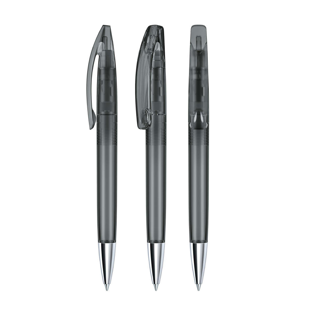 Drehkugelschreiber „senator® Bridge Clear MT“ – charakterstark, edel & markant. - Der „Bridge Clear MT“ kombiniert eine glänzend transparente Gehäuseoberfläche mit einer Metallspitze. Das Zusammenspiel von modernem Look und hochwertigem Detail macht ihn zu einem repräsentativen Begleiter. - Die senator® magic flow G2 Mine (1,0 mm) sorgt für bis zu 5.000 Meter Schreiblänge – sauber, flüssig und zuverlässig. - Der Kugelschreiber ist Made in Germany und steht für höchste Qualität, Langlebigkeit und Zuverlässigkeit. Eine kostenlose Ersatzmine verlängert die Lebensdauer zusätzlich.