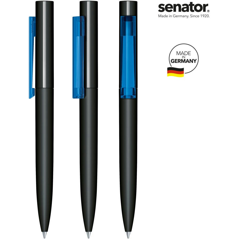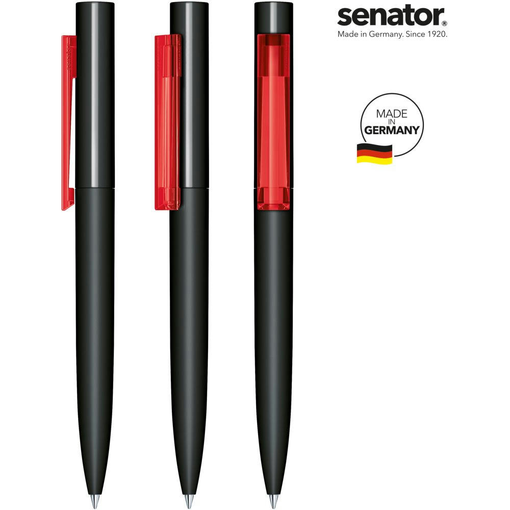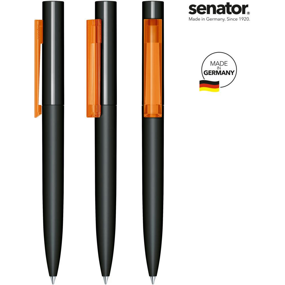 Drehkugelschreiber „senator® Headliner Soft Touch“ – geradlinig und originell. - Der „Headliner Soft Touch“ zeigt sich mit einer hochwertigen Soft Touch-Lackierung in Schwarz, die sich samtweich anfühlt und besonders griffig in der Hand liegt. Ein transparenter, farbiger Clip sorgt für einen modernen Kontrast und macht das klare, geradlinige Design zu einem Blickfang. - Die senator® magic flow G2 Mine (1,0 mm) sorgt für bis zu 5.000 Meter Schreiblänge – präzise und flüssig. - Der Kugelschreiber ist Made in Germany und steht für höchste Qualität, Langlebigkeit und Zuverlässigkeit. Eine kostenlose Ersatzmine verlängert die Nutzungsdauer zusätzlich.